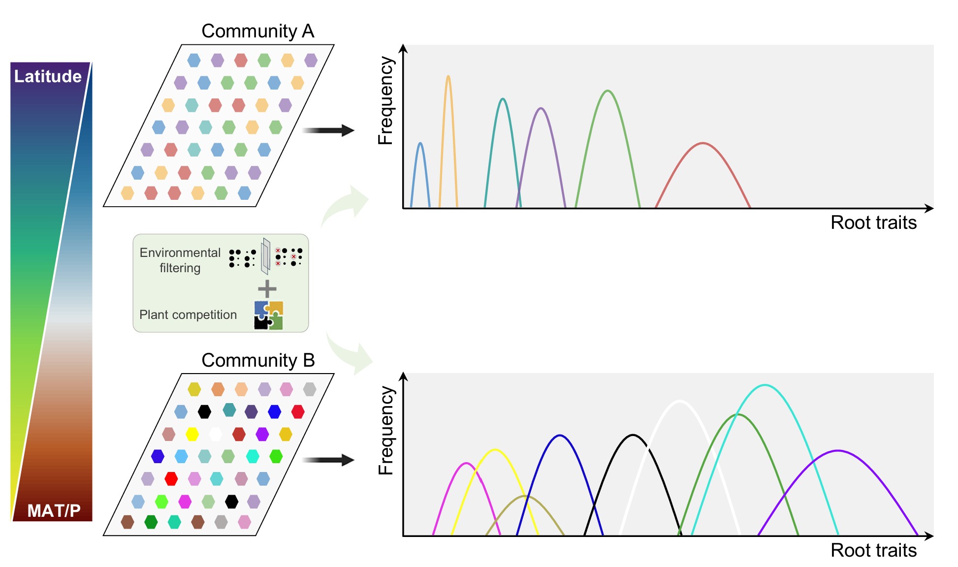 植物性状种内变异受遗传变异与表型可塑性的双重调控。根系作为植物获取水分与养分的核心器官,不仅支撑植物个体的生长与生存,还通过调节资源竞争等影响物种间的相互作用,并通过碳输入、养分循环等过程影响生态系统功能。因此,根系性状的种内变异程度对多物种共存与生态系统功能可能存在深刻影响。
