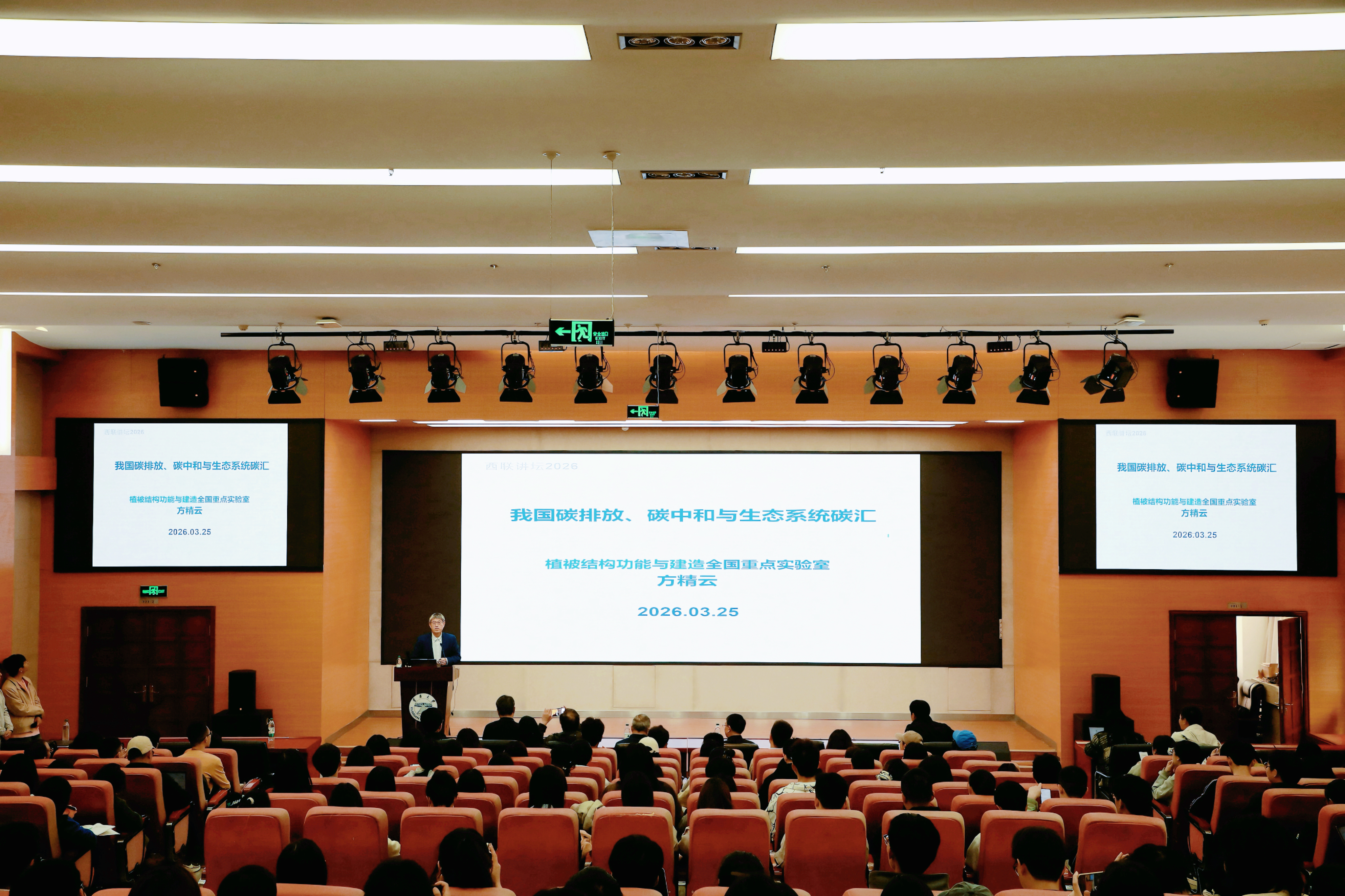 讲座中,方精云院士结合自身研究积累,围绕碳达峰、碳中和目标及实现路径,深入剖析全球视角下我国碳排放特征,系统梳理陆地碳汇的演变历程与未来趋势,详细阐释了碳汇的主要形成机制。讲座现场座无虚席,学术氛围浓厚。来自不同专业的师生们全神贯注,认真记录讲座要点。在交流互动环节,大家结合自身研究方向踊跃提问,方精云院士耐心倾听,细致解答,以开阔的科研视野为师生们指点迷津,现场互动热烈,掌声不断。