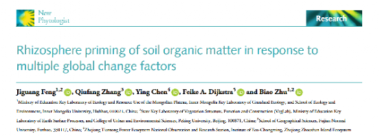 近日,植被结构功能与建造全国重点实验室朱彪教授团队和内蒙古大学冯继广研究员通过全球meta分析,对 39 种植物在 49 种矿质和有机土壤中的 220 个根际启动效应观测数据进行系统整合与分析,首次系统量化了多种全球变化因子对 RPE 的影响,并解析了植物、土壤和实验因素在调控 RPE 中的作用模式。研究成果以题为《Rhizosphere priming of soil organic matter in response to multiple global change factors》发表在New Phytologist上。