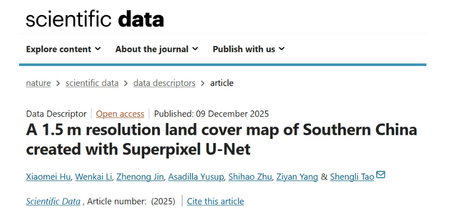 近日,植被结构功能与建造全国重点实验室陶胜利课题组在《Scientific Data》期刊发表题为“A 1.5 m resolution land cover map of Southern China created with Superpixel U-Net”的研究论文。该研究创新性提出了Superpixel_U-Net深度学习模型,并将其应用在ESRI World超大规模影像数据集中,成功绘制了1.5米分辨率的中国南方土地利用地图。在多项精度评估指标中,该地图表现突出,为后续科研分析奠定了高质量的数据基础,也为复杂区域的高精度土地利用制图提供了全新的技术方案。