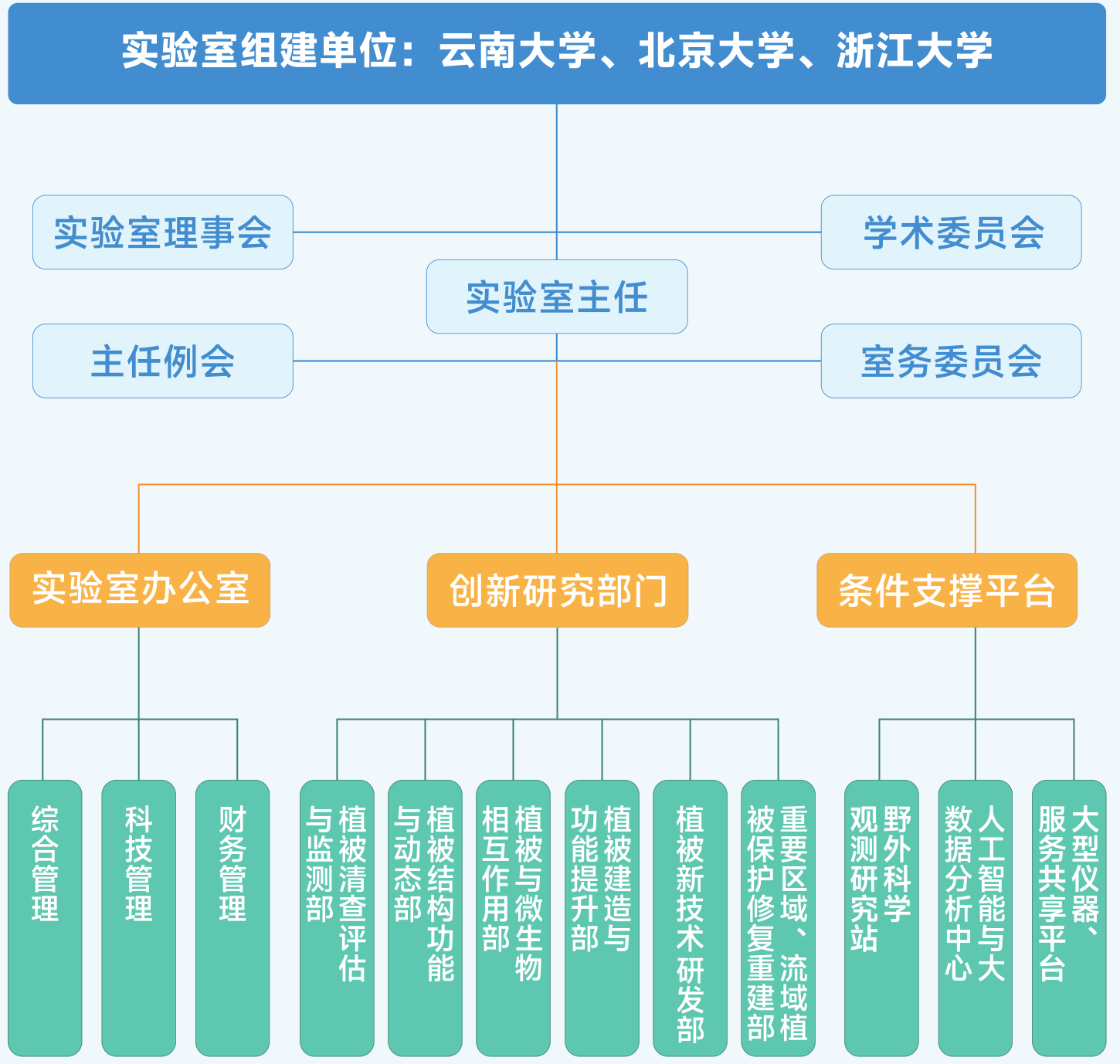 植被结构功能与建造全国重点实验室由云南大学、北京大学和浙江大学共同建设,聚焦我国植被本底不清、结构功能退化、构建机制不明、修复与建造存在技术瓶颈等重大基础与应用问题,设立六个研究方向:1)植被清查、评估与监测,2)植被结构、功能与动态,3)植被与微生物相互作用,4)植被建造与功能提升,5)植被新技术研发,6)重要区域/流域植被保护、修复与重建。实验室致力于引领世界植被前沿研究,旨在打造我国植被领域战略科技力量、提升支撑国家生态建设和保护的能力。